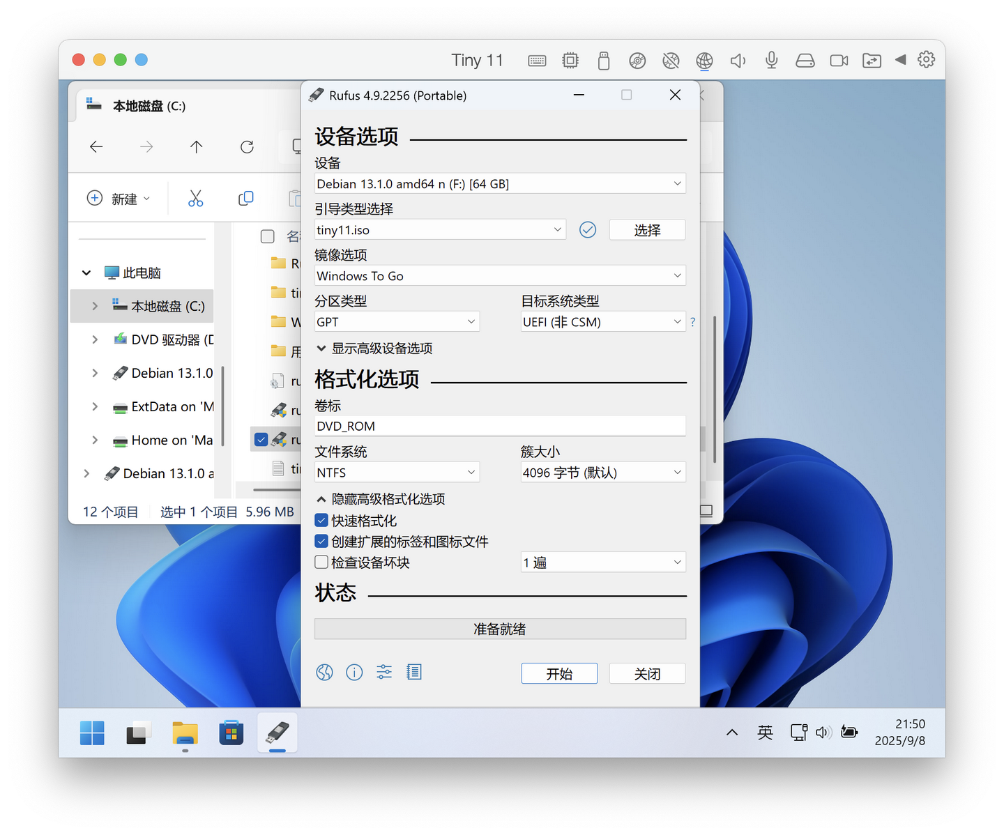 首先,macOS系统定是没法直接做Windows启动盘的,必须借助Parallels Desktop虚拟机内的Windows环境来完成,而所用的工具自然是经典的Rufus。