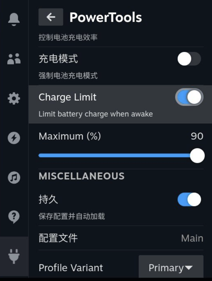 比如设置90%的充电限制来保护电池,毕竟掌机的电池续航还是很金贵的。