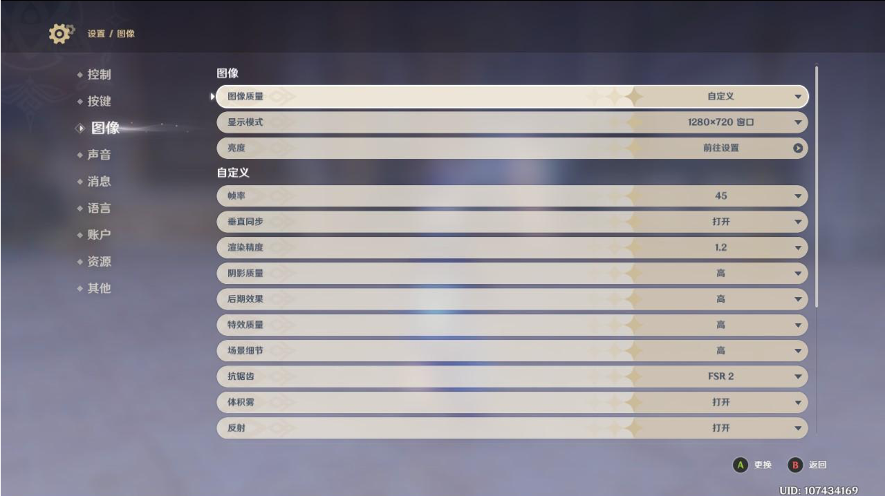 720p 高画质,渲染精度1.2,打开FSR2。这种情况下居然还能跑到最高60帧!