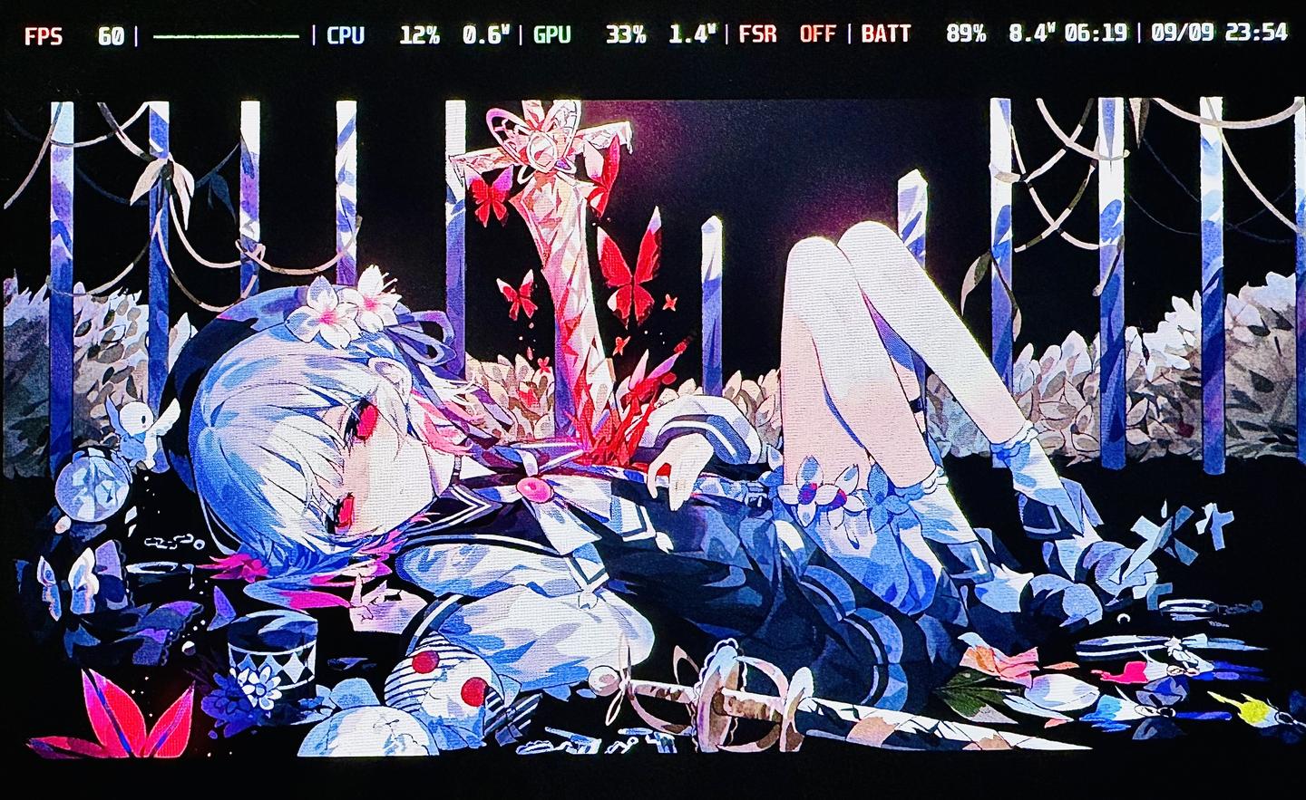 Steam Deck自带的性能叠加层信息已经很丰富,但唯独缺少了当前时间。使用MangoPeel可以自定义叠加层显示的信息,例如像我这样,将当前时间和FSR信息调出来,代替原生的内存/显存占用信息。
